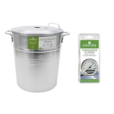 Le thermomètre Le Pratique vendu dans ce lot est parfaitement adapté au stérilisateur de 40 L. il se place à l‘emplacement prévu au centre de votre couvercle et vous indique précisément la température à l’intérieur de la cuve. Gradué de 25 à 100°C, ce thermomètre à cadran vous permet de contrôler et d’ajuster la température dans votre cuiseur aux préparations que vous souhaitez réaliser.