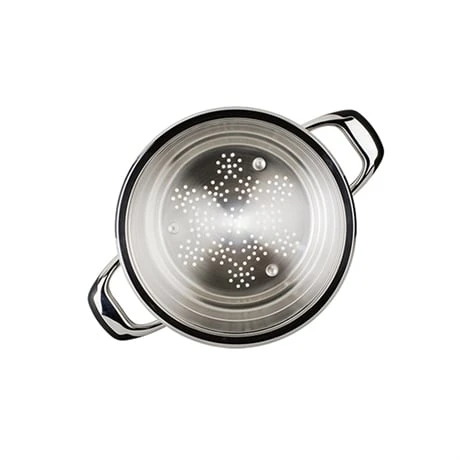 Le cuit vapeur permet, comme son nom l’indique, de transformer votre faitout en cuit-vapeur et de cuisiner sur 2 étages. Le joint d’eau qui se créé naturellement lorsque vous fermez votre faitout se créé de la même manière lorsque vous intégrez le cuit-vapeur.